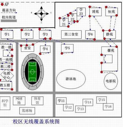 新校區(qū)的無線寬帶網(wǎng)絡(luò)覆蓋系統(tǒng)設(shè)計,包括了博物館樓、行政辦公樓、機電樓、管理學(xué)院樓、信電學(xué)樓、藝術(shù)樓、資源樓、能源樓、材料學(xué)院樓、建工學(xué)院樓、化工樓、環(huán)測樓等在內(nèi)的多個建筑的整體無線覆蓋,以及校園中心廣場、食堂、體育場等多個公共區(qū)域的覆蓋,最終實現(xiàn)校園無線寬帶網(wǎng)絡(luò)的全面覆蓋,完成校園信息化的整體目標(biāo)。