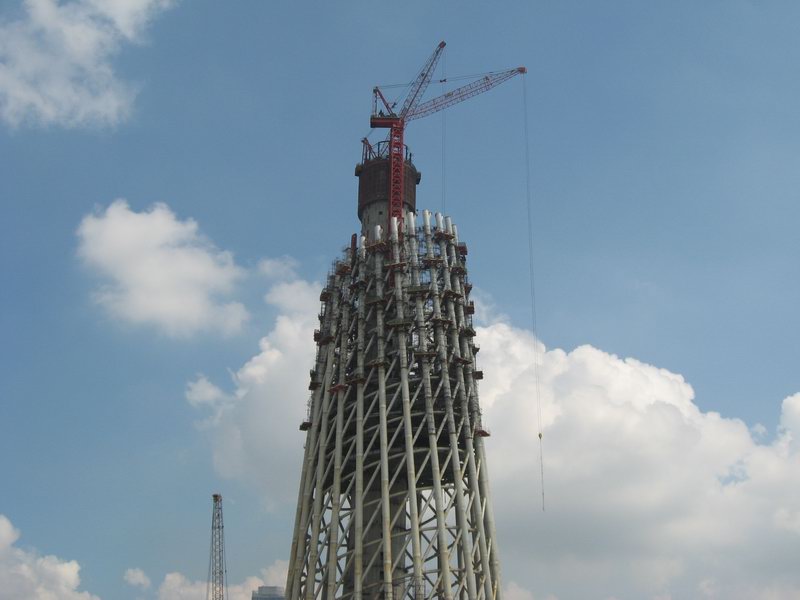 該塔于2005年底開始動工,到現(xiàn)在為止,主塔已經(jīng)有100多米的高度,為了保證施工的安全,建設方(廣州市政府)決定在塔頂施工處安裝全實時監(jiān)控攝像頭,同時,把現(xiàn)場的圖像傳到塔下200米左右的監(jiān)控中心,大宏科技的技術工程師在經(jīng)過現(xiàn)場考察后,設計了一套行之有效的方案,保證了圖像實時的傳輸回地面指揮中心。